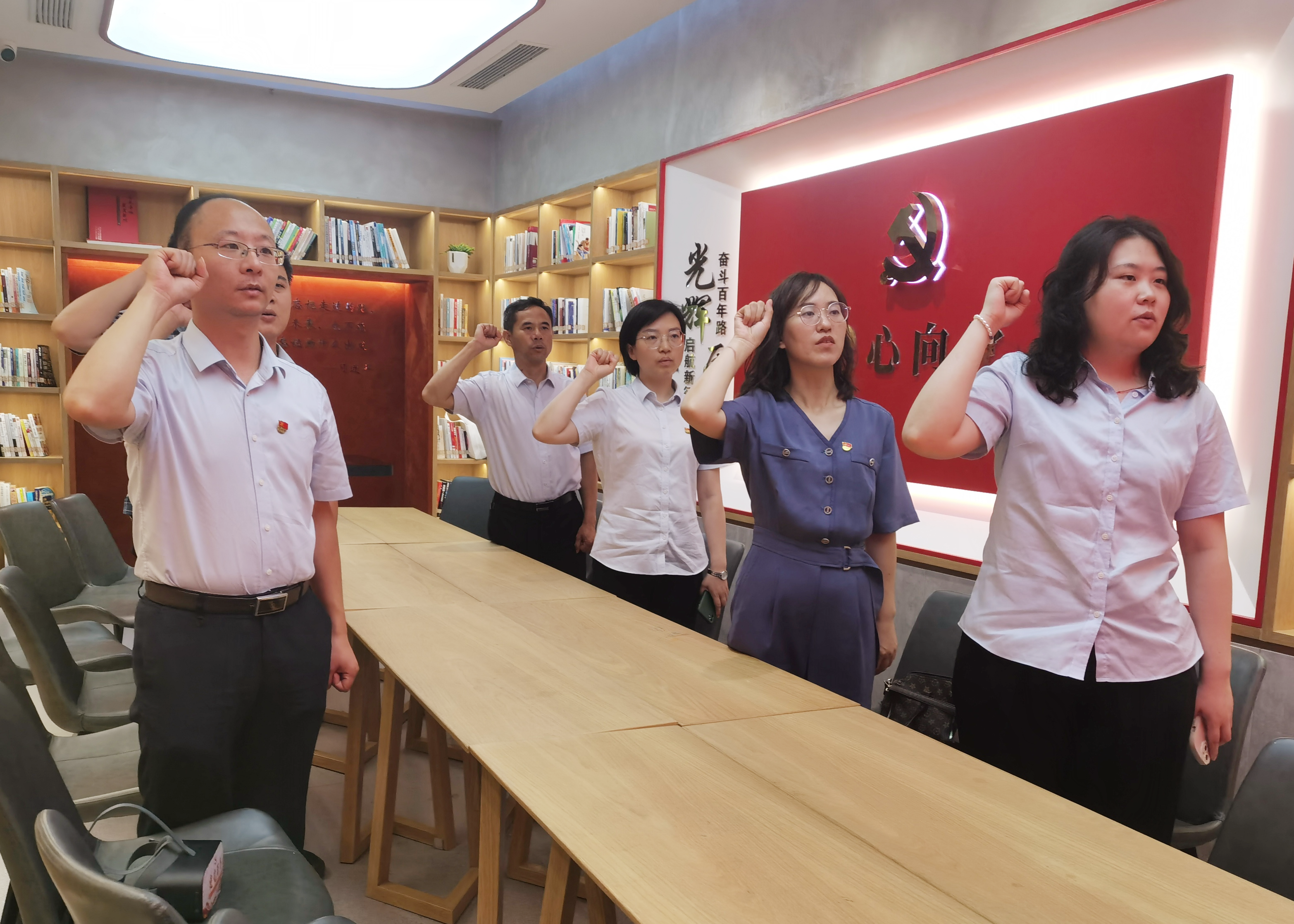 活動中,黨員們參觀了“E時(shí)光”書屋,配戴VR眼鏡,沉浸式體驗(yàn)E心向黨數(shù)字黨建館中的《中華人民共和國成立》《西柏坡紀(jì)念館》《網(wǎng)信滁州數(shù)字館》等場館,并進(jìn)行了黨史知識在線測試答題。通過觀看珍貴的歷史畫面,學(xué)習(xí)傳承中國共產(chǎn)黨在長期奮斗中鑄就的偉大精神。活動最后,全體黨員重溫了入黨誓詞。