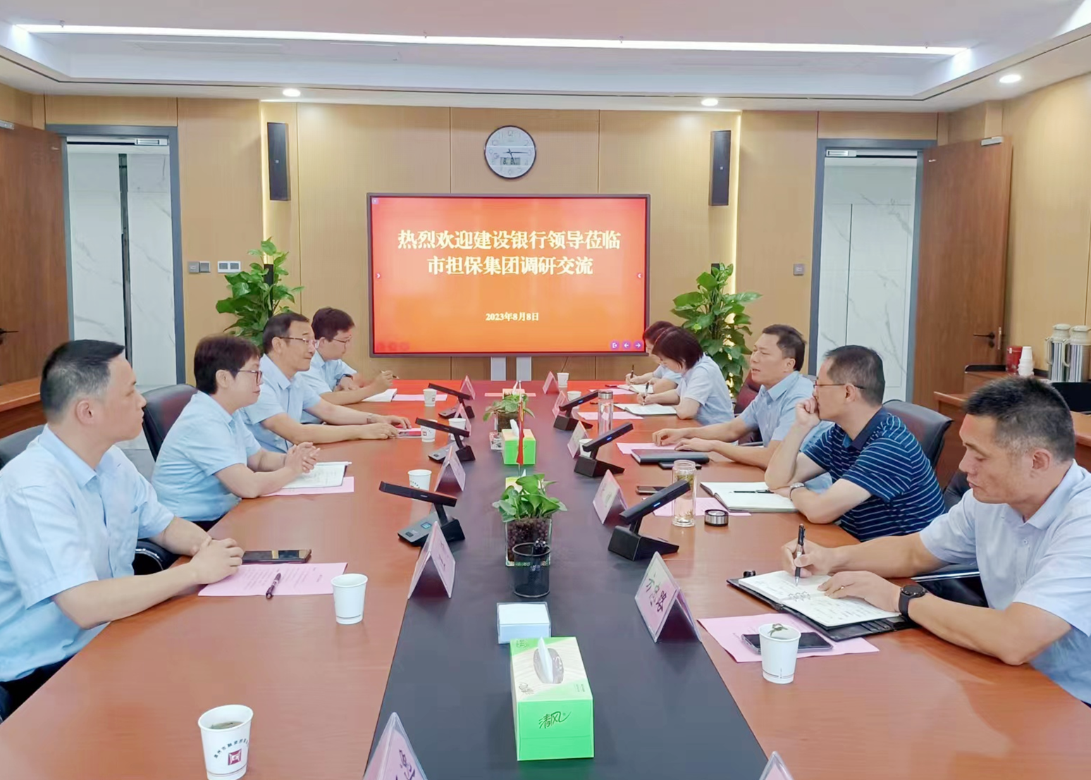8月8日下午,省建行普惠金融事業(yè)部副總經(jīng)理呂梁一行在市建行副行長徐家樂的陪同下到訪市擔(dān)保集團(tuán)調(diào)研交流,集團(tuán)黨委書記、董事長、總經(jīng)理高文進(jìn)及相關(guān)領(lǐng)導(dǎo)、部室負(fù)責(zé)人參加座談。