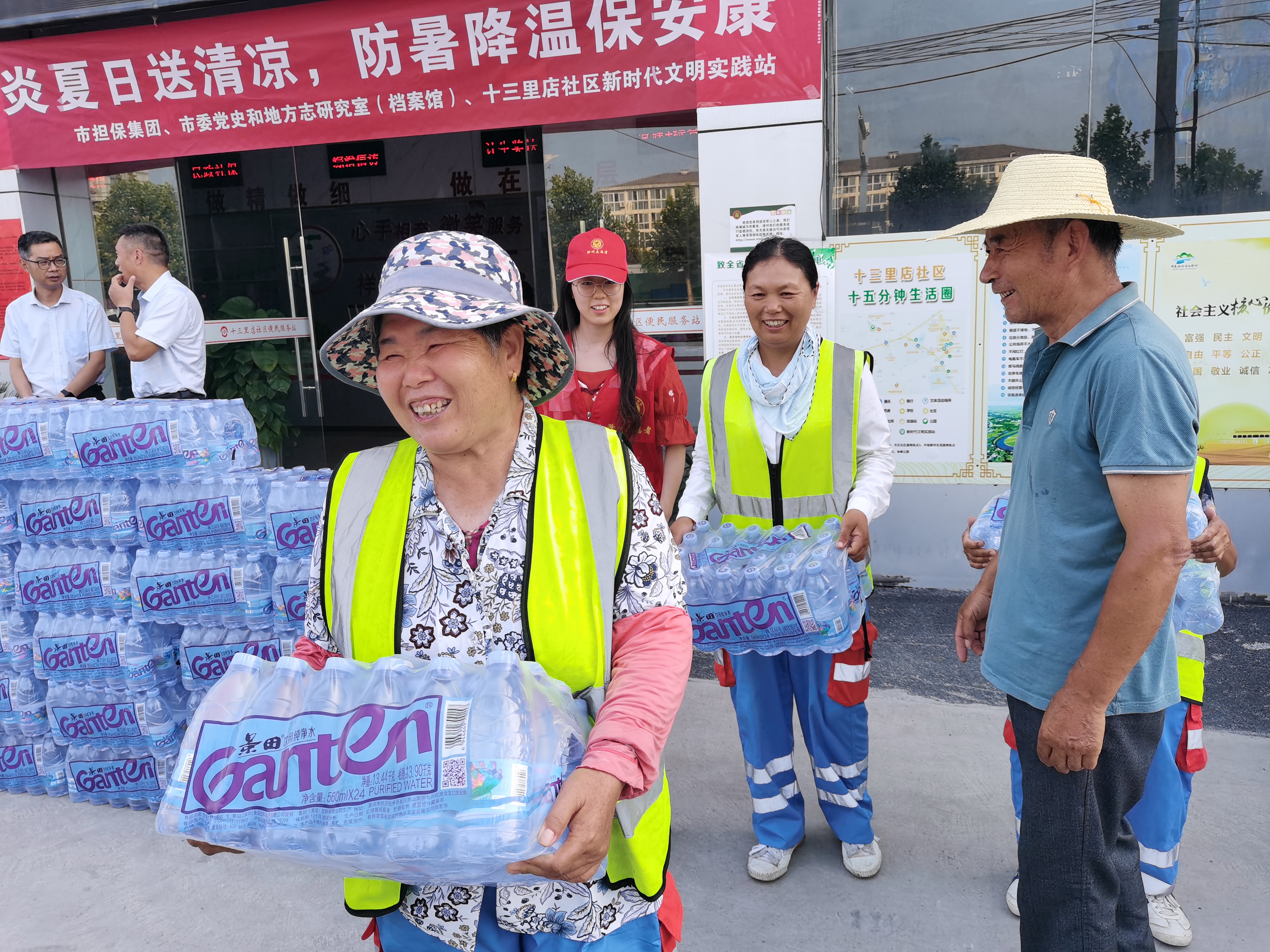 連日來(lái),氣溫一直居高不下,處處熱浪滾滾,戶外作業(yè)的環(huán)衛(wèi)工人們頂烈日、冒酷暑,用辛勤的汗水換來(lái)干凈整潔的環(huán)境。為給他們送去一份清涼和關(guān)愛(ài),市擔(dān)保集團(tuán)第一、第二黨支部聯(lián)合市委黨史辦、十三里店社區(qū)黨組織共同開(kāi)展以“ 炎炎夏日送清涼,防暑降溫保安康”為主題的夏送清涼主題黨日活動(dòng),有效推動(dòng)黨群融合,持續(xù)推進(jìn)“我為群眾辦實(shí)事 ”實(shí)踐活動(dòng)走深走實(shí)。