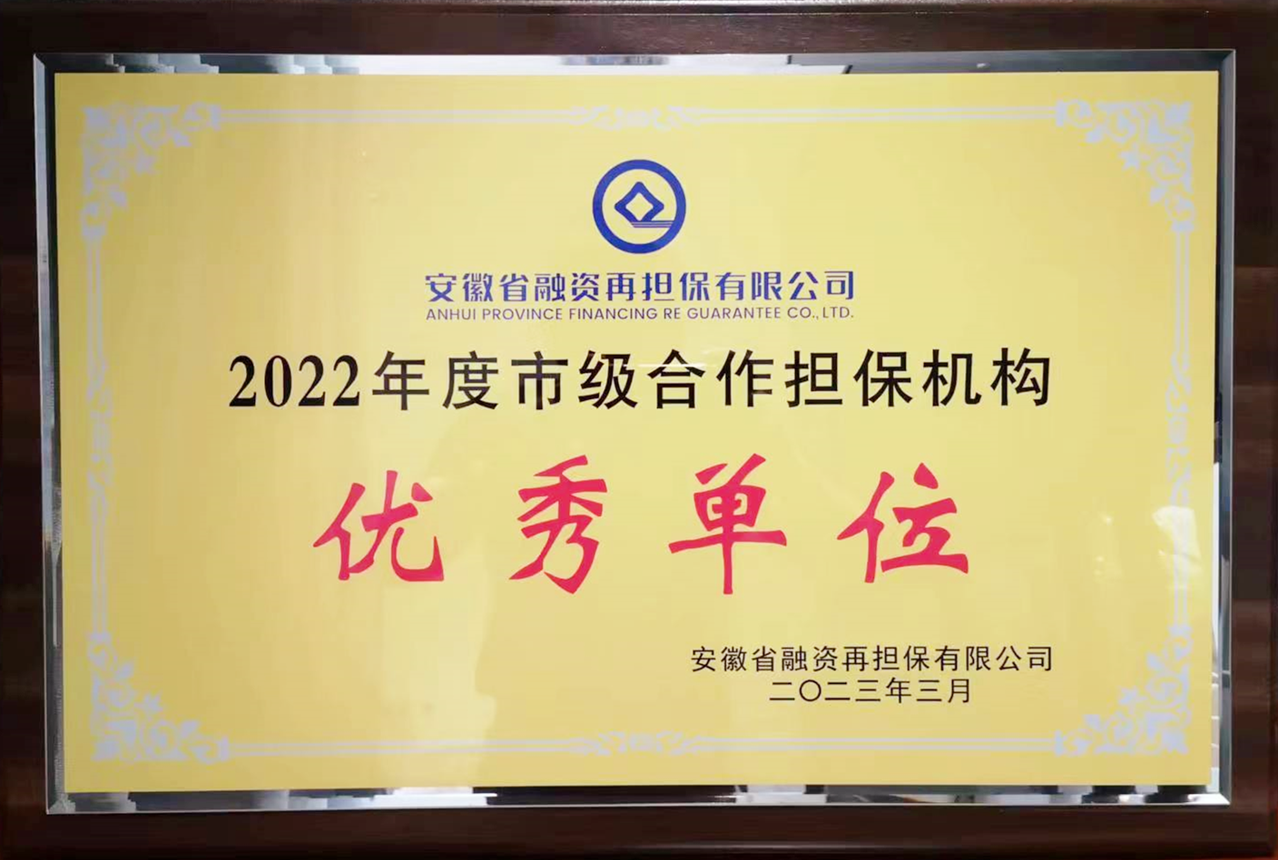 近日,安徽省融資再擔保有限公司發(fā)布了《關(guān)于2022年度合作擔保機構(gòu)綜合評價及評先評優(yōu)情況的通報》,從服務(wù)效能、政策效應(yīng)、風(fēng)險控制、體系建設(shè)等4個維度對體系內(nèi)132家市、縣(市、區(qū))政府性融資擔保機構(gòu)進行綜合測評,滁州市普惠擔保公司榮獲“2022年度市級合作擔保機構(gòu)優(yōu)秀單位”稱號,公司已連續(xù)兩年獲此榮譽。