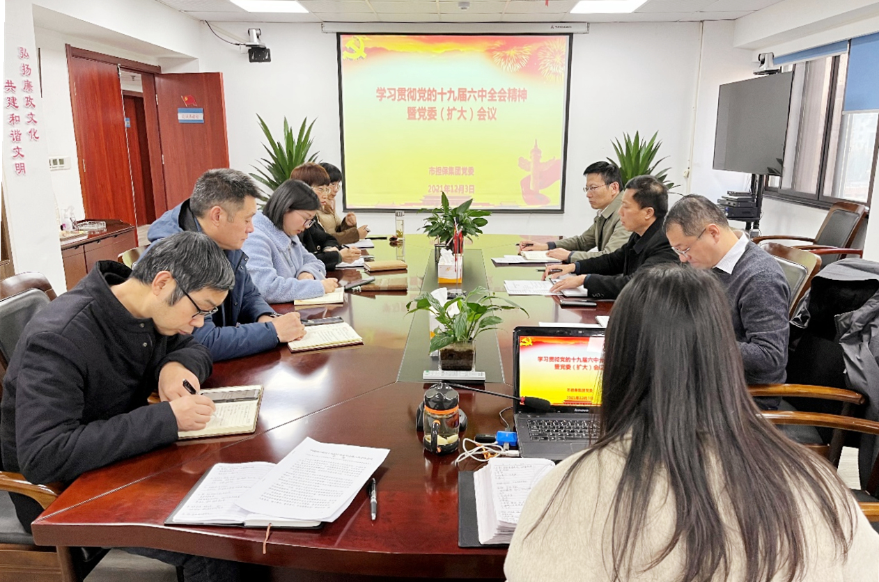 12月3日下午,市擔保集團召開黨委(擴大)會議,專題學習貫徹黨的十九屆六中全會精神,集團黨委書記、董事長、總經理高文進主持會議,全體干部職工參加。