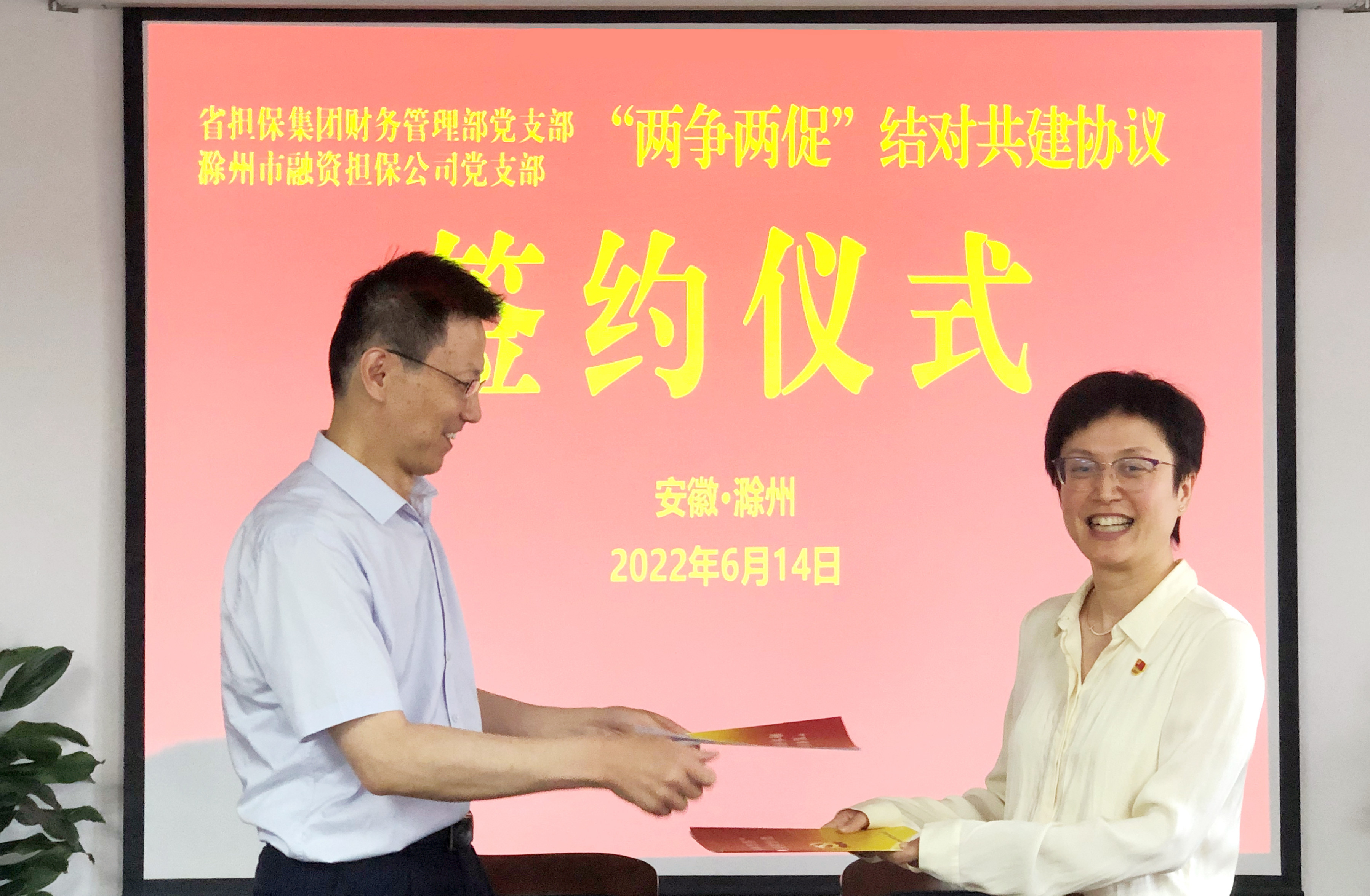 活動(dòng)中,雙方簽署了“兩爭(zhēng)兩促”結(jié)對(duì)共建協(xié)議,開展了“傳承紅色基因 凝聚紅色力量”主題黨日活動(dòng),省擔(dān)保集團(tuán)還向我單位贈(zèng)送了黨建書籍。