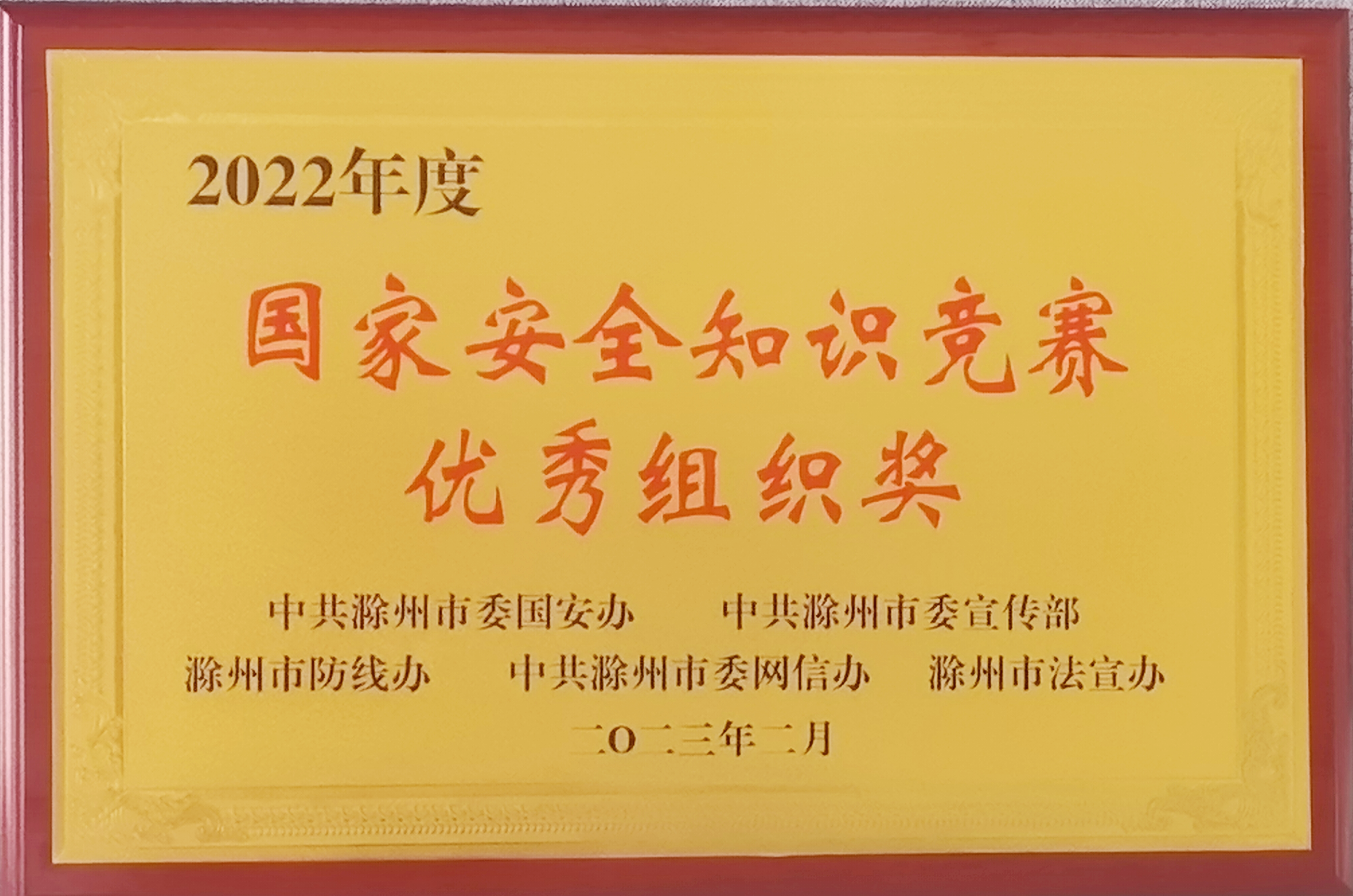 市擔(dān)保集團(tuán)獲評(píng)滁州市國(guó)家安全知識(shí)競(jìng)賽優(yōu)秀組織單位