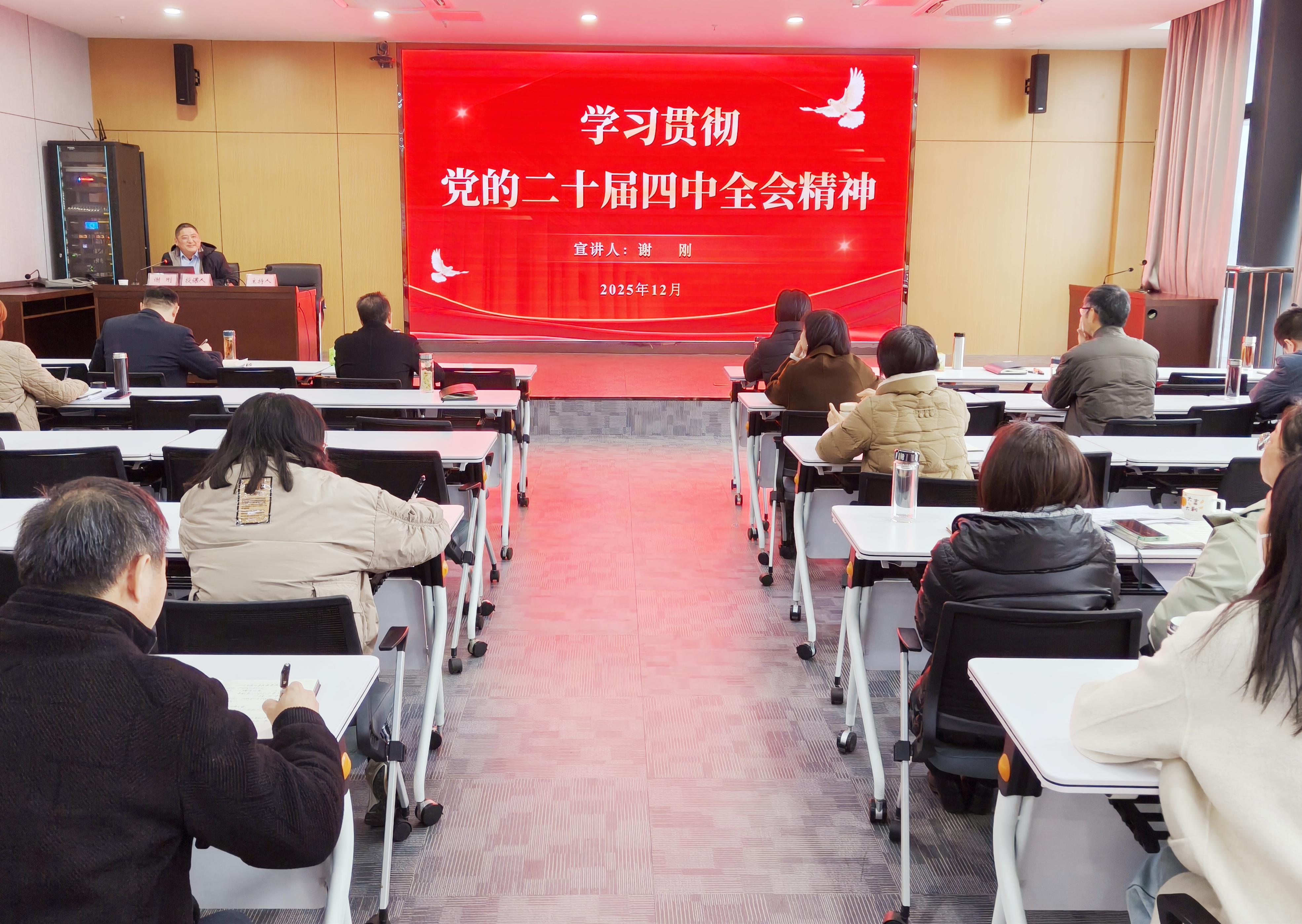 - 為進(jìn)一步學(xué)習(xí)好、宣傳好、貫徹好黨的二十屆四中全會精神,把思想和行動迅速統(tǒng)一到黨中央的決策部署上來,12月22日,市擔(dān)保集團(tuán)舉行“舉旗幟·送理論”學(xué)習(xí)貫徹黨的二十屆四中全會精神專題宣講報告會,邀請滁州廣播電視大學(xué)黨委委員、副校長謝剛作專題宣講報告,集團(tuán)及子公司全體干部職工參加學(xué)習(xí)。 報告系統(tǒng)闡釋了黨的二十屆四中全會的重大歷史意義、核心精神實質(zhì)和實踐要求,重點(diǎn)解讀了“十五五”時期發(fā)展指導(dǎo)方針、主要目標(biāo)和戰(zhàn)略任務(wù),并結(jié)合近期中央政治局會議及中央經(jīng)濟(jì)工作會議,為國有企業(yè)如何貫徹落實全會精神、把握經(jīng)濟(jì)大勢、融入國家戰(zhàn)略提供了細(xì)致的解讀與指導(dǎo),宣講內(nèi)容實踐性強(qiáng)、啟發(fā)性足。 會議強(qiáng)調(diào),學(xué)習(xí)貫徹全會精神,貴在理解、重在落實,集團(tuán)全體干部職工要以此次報告會為契機(jī),在深化學(xué)習(xí)、融會貫通、擔(dān)當(dāng)實干上持續(xù)用力,切實把學(xué)習(xí)成果轉(zhuǎn)化為攻堅克難、推動發(fā)展的具體行動,全力完...